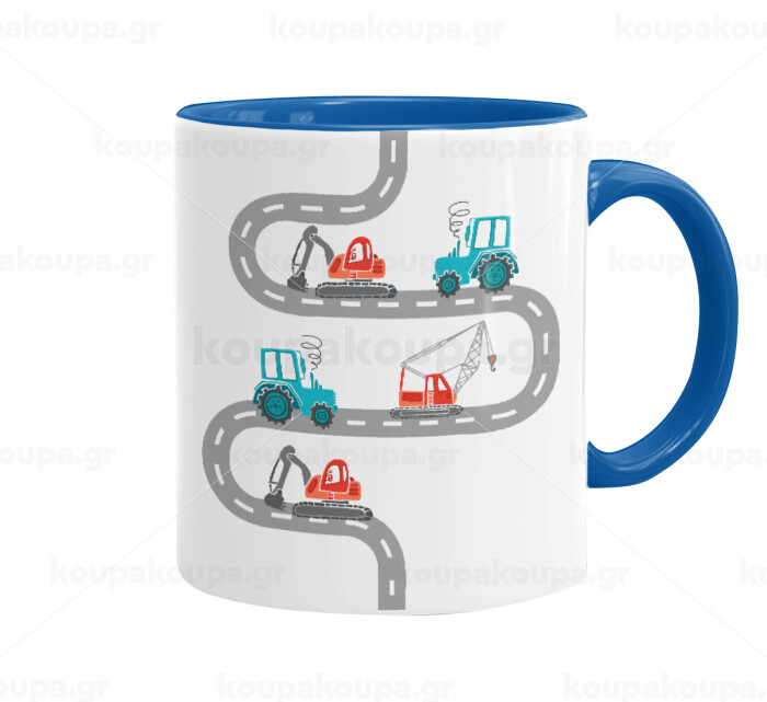 excavator along road, Mug colored blue, ceramic, 330ml