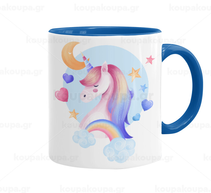 Cute unicorn, Mug colored blue, ceramic, 330ml