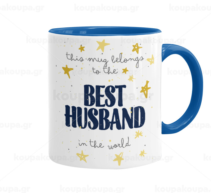 This mug belongs to the BEST HUSBAND in the world!, Mug colored blue, ceramic, 330ml