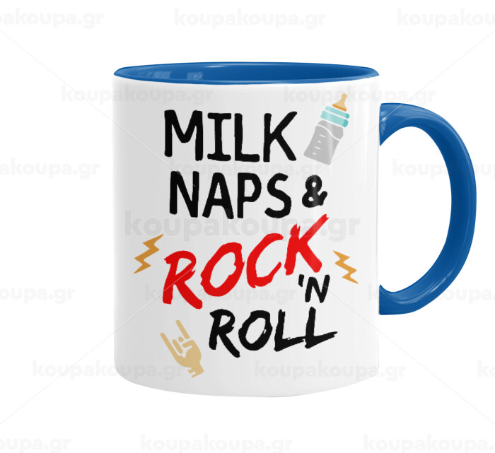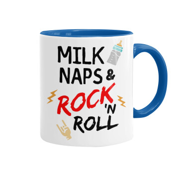 milk naps and Rock n' Roll, Mug colored blue, ceramic, 330ml