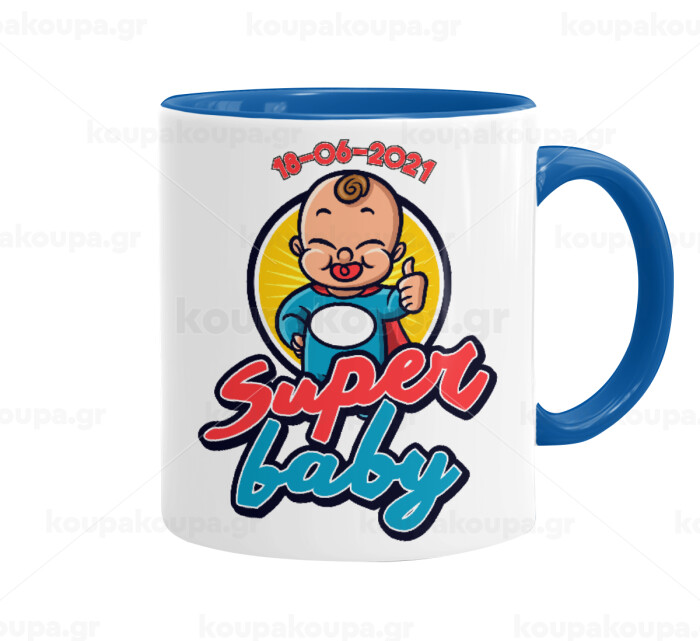 Super baby., Mug colored blue, ceramic, 330ml