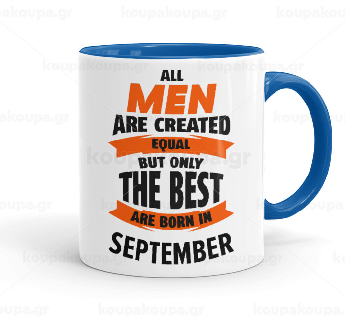 All men are created equal but only the best are born in September, Mug colored blue, ceramic, 330ml