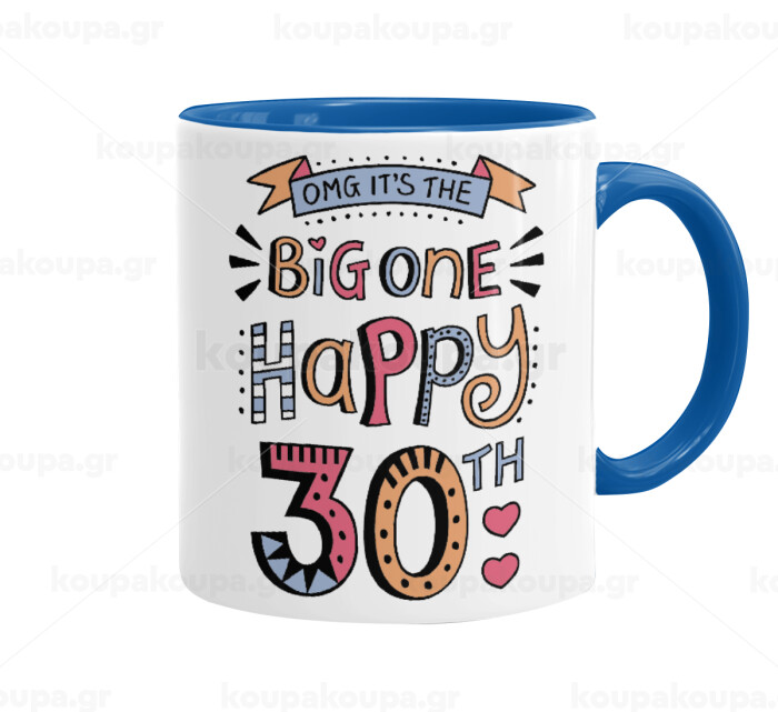 Big one Happy 30th, Mug colored blue, ceramic, 330ml