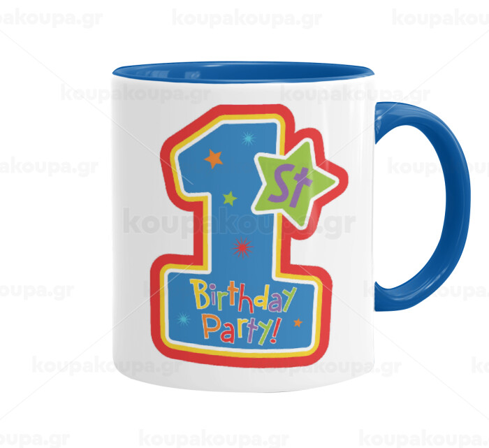 Happy 1st Birthday, Mug colored blue, ceramic, 330ml