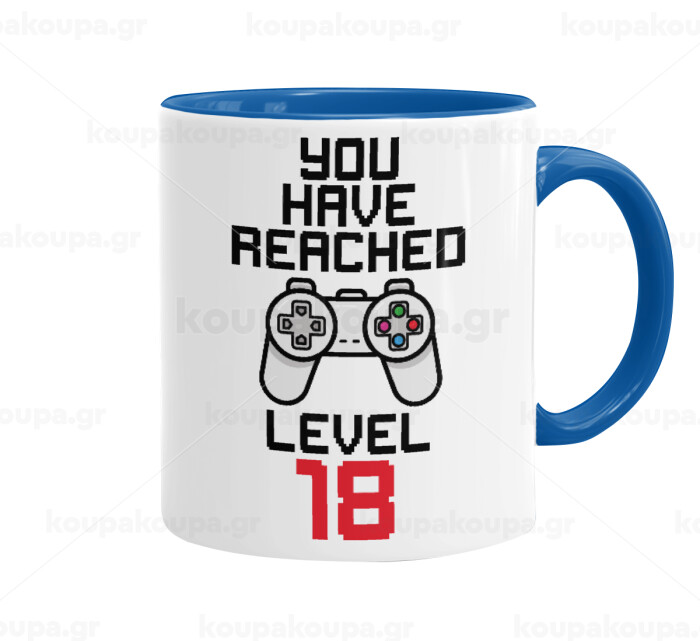 You have Reached level AGE, Mug colored blue, ceramic, 330ml