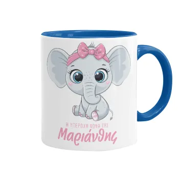 Η νονά μου, ελεφαντάκι ροζ, Mug colored blue, ceramic, 330ml