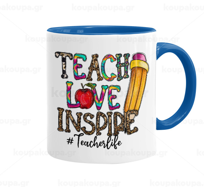 Teach, Love, Inspire, Mug colored blue, ceramic, 330ml