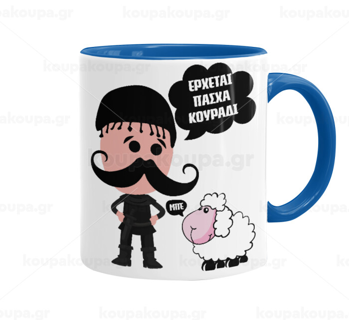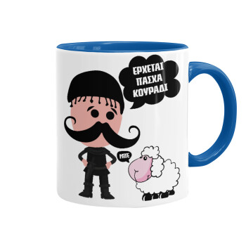 Κρητικός "Έρχεται Πάσχα κουράδι", Mug colored blue, ceramic, 330ml