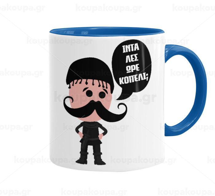 Κρητικός "Ίντα λες ωρέ κοπέλι", Mug colored blue, ceramic, 330ml