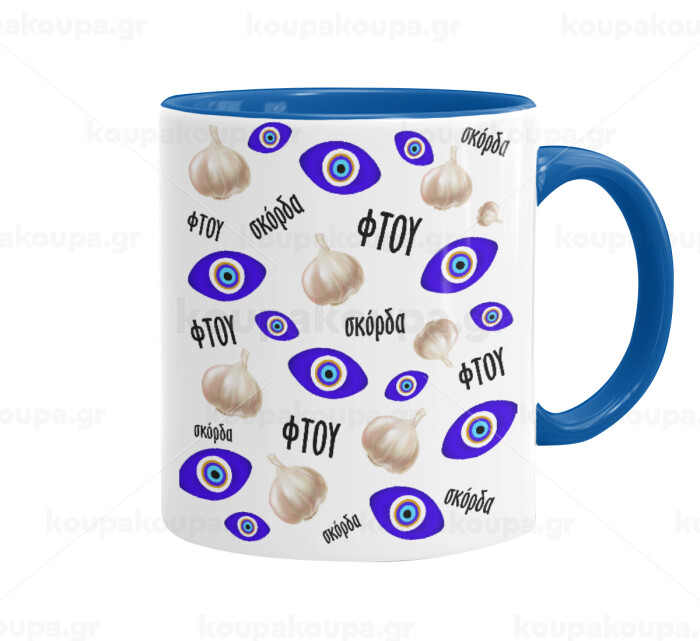 Φτου, φτου, σκόρδα!!!, Mug colored blue, ceramic, 330ml