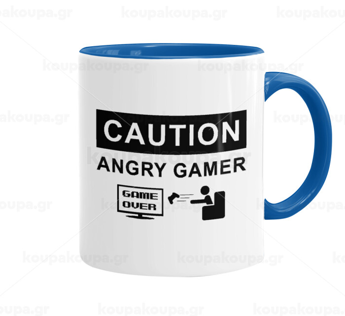 Caution, angry gamer!, Mug colored blue, ceramic, 330ml