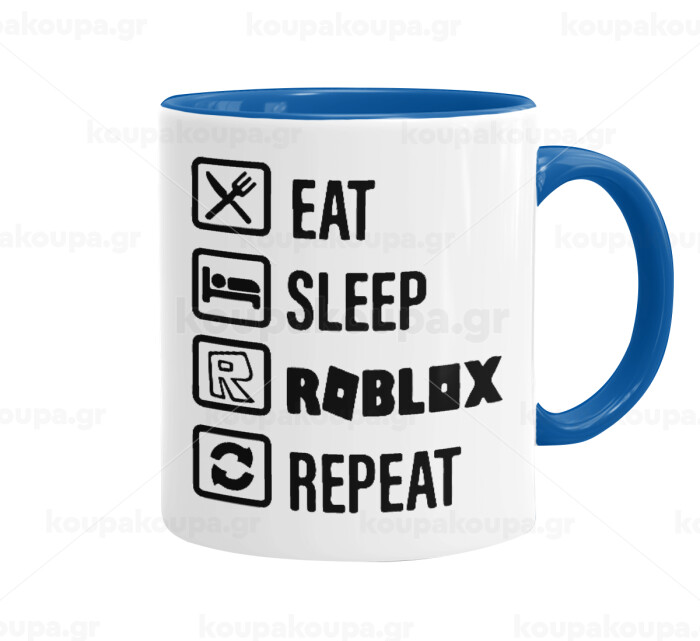 Eat, Sleep, Roblox, Repeat, Mug colored blue, ceramic, 330ml