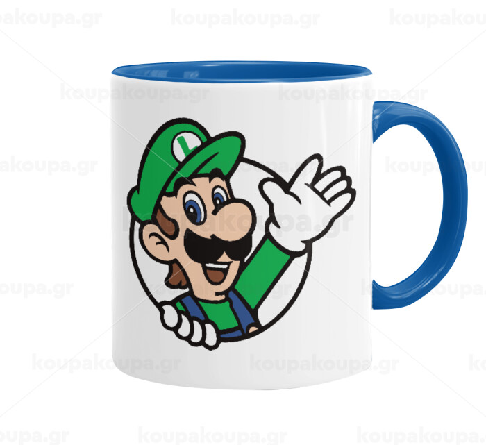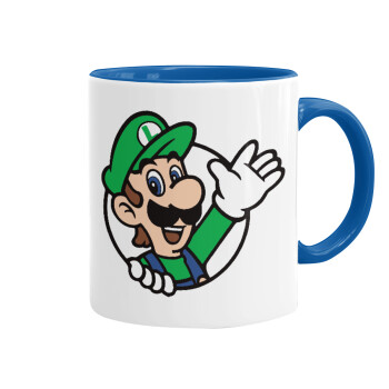 Super mario Luigi win, Mug colored blue, ceramic, 330ml