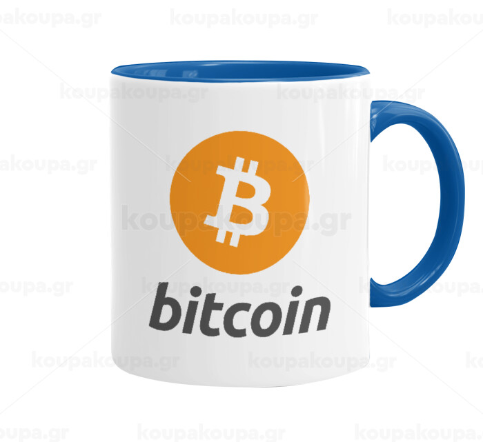 Bitcoin, Mug colored blue, ceramic, 330ml
