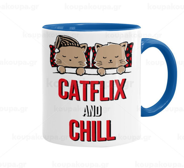 Catflix and Chill, Mug colored blue, ceramic, 330ml
