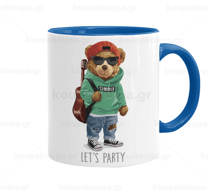 Let's Party Bear, Mug colored blue, ceramic, 330ml