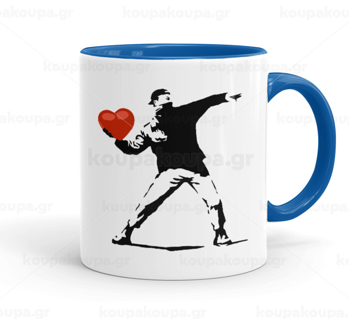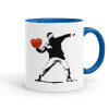 Banksy (The heart thrower), Mug colored blue, ceramic, 330ml