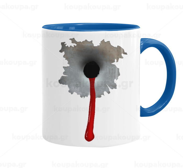 Bullet holes, Mug colored blue, ceramic, 330ml