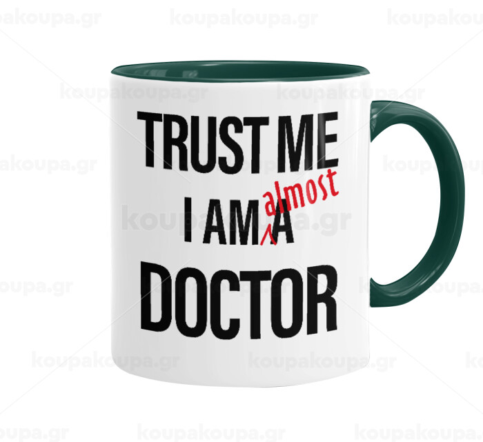 Trust me, i am (almost) Doctor, Mug colored green, ceramic, 330ml