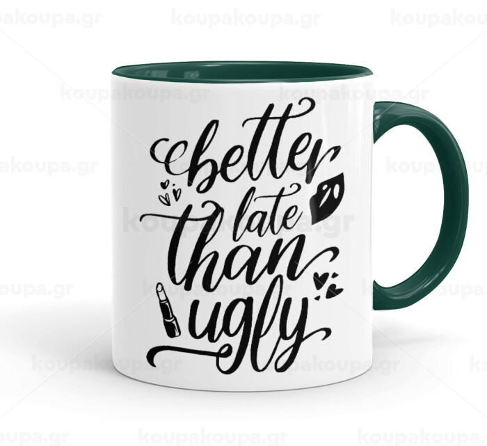 Better late than ugly, Mug colored green, ceramic, 330ml