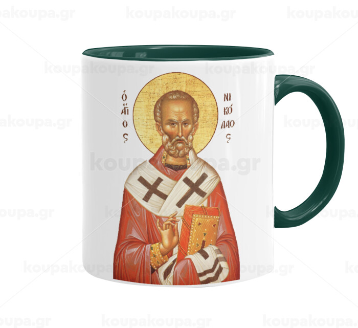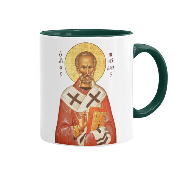 Saint Nicholas orthodox , Mug colored green, ceramic, 330ml