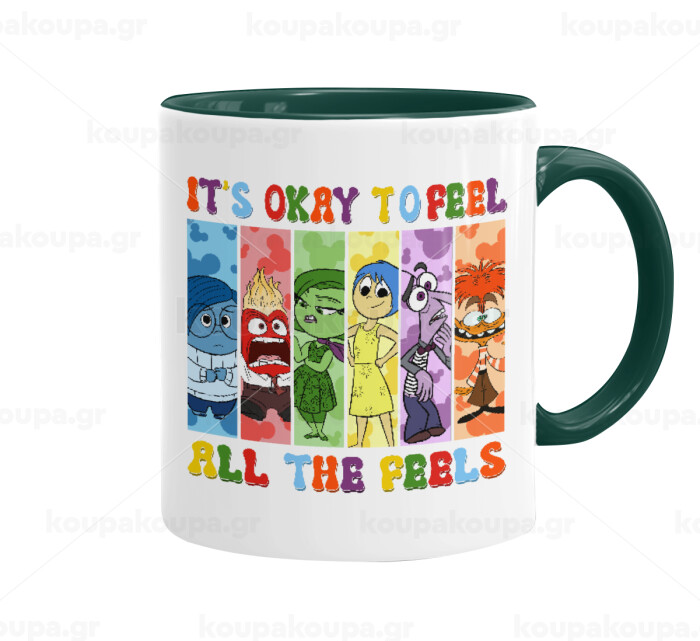 Inside Out It's Okay To Feel All The Feels , Mug colored green, ceramic, 330ml