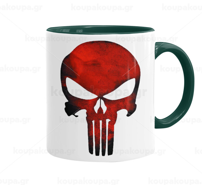 Red skull, Mug colored green, ceramic, 330ml