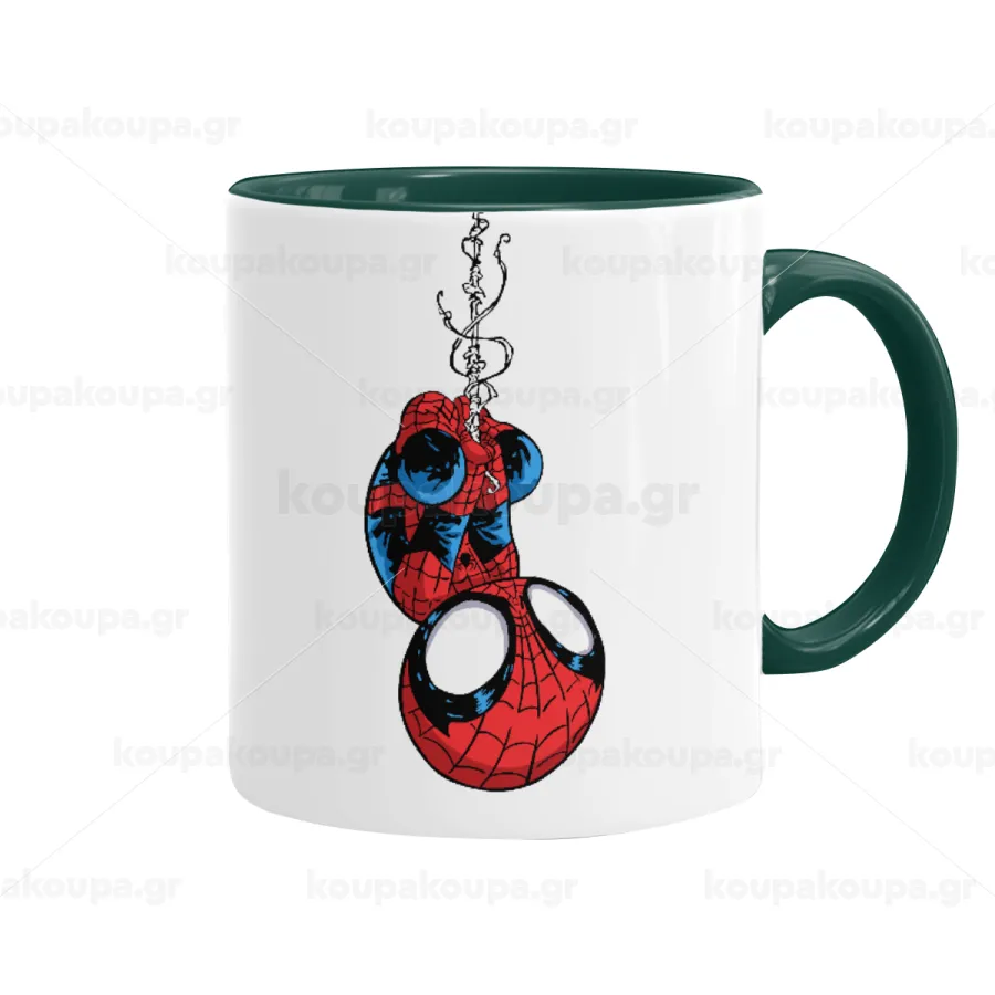 Spiderman upside down, Mug colored green, ceramic, 330ml