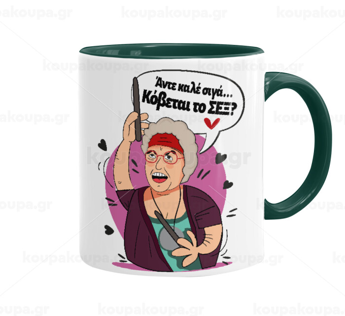 Αντε καλέ, σιγά, κόβεται το σέξ ;, Mug colored green, ceramic, 330ml