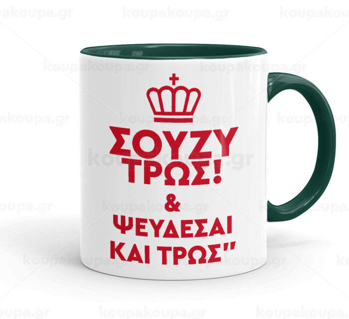 Σούζυ και ψεύδεσαι και τρως, Mug colored green, ceramic, 330ml