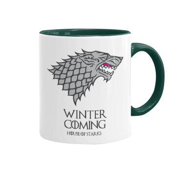 GOT House of Starks, winter coming, Mug colored green, ceramic, 330ml