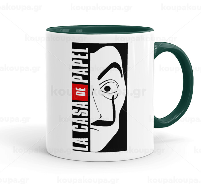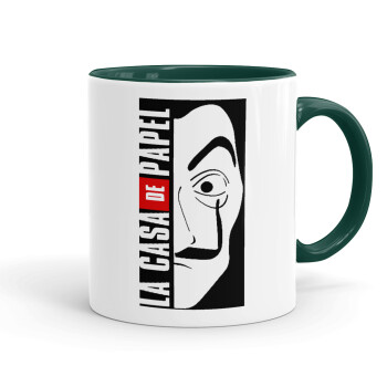 La casa de papel vertical, Mug colored green, ceramic, 330ml
