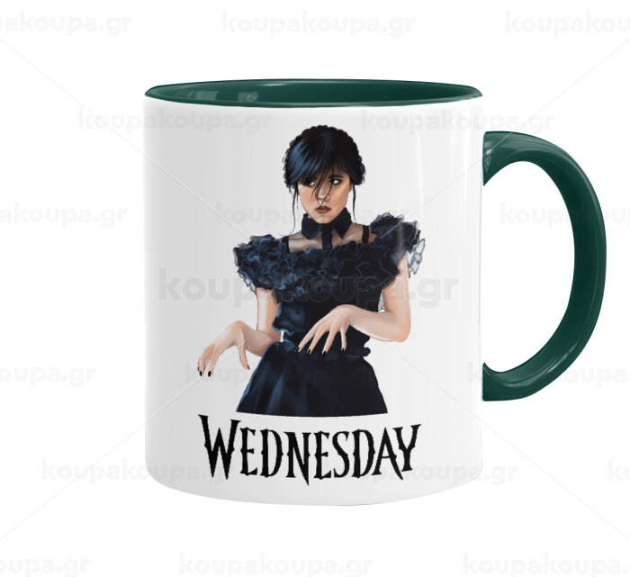 Wednesday Adams, dance with hands, Mug colored green, ceramic, 330ml