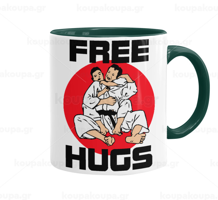 JUDO free hugs, Mug colored green, ceramic, 330ml