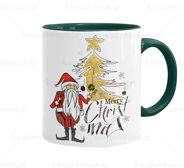 Santa Claus gold, Mug colored green, ceramic, 330ml