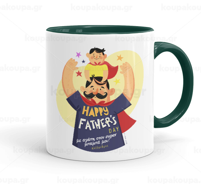 Happy Fathers Day με όνομα, Mug colored green, ceramic, 330ml