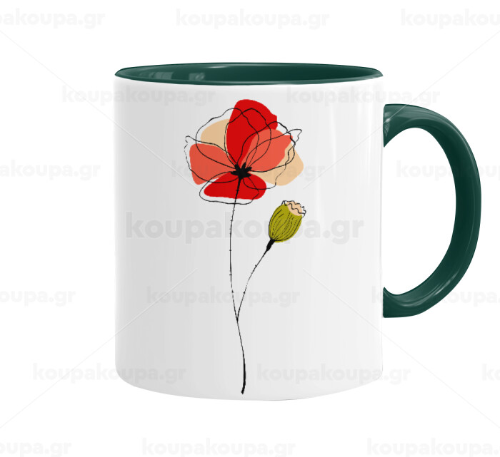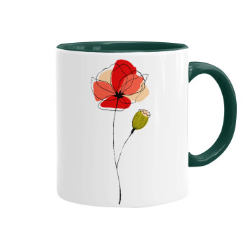 Red poppy flowers papaver, Mug colored green, ceramic, 330ml