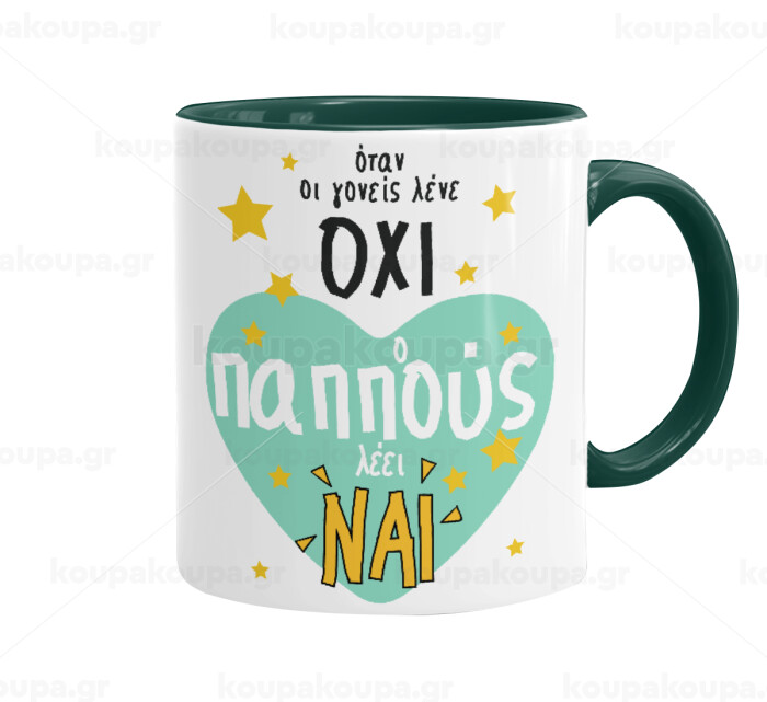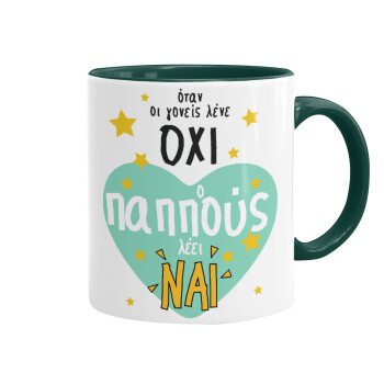 Όταν οι γονείς λένε ΟΧΙ, ο παππούς λέει ΝΑΙ, Mug colored green, ceramic, 330ml