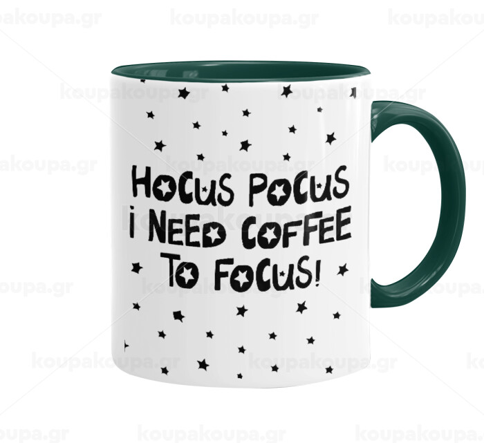 Hocus pocus i need coffee to focus - halloween, Mug colored green, ceramic, 330ml