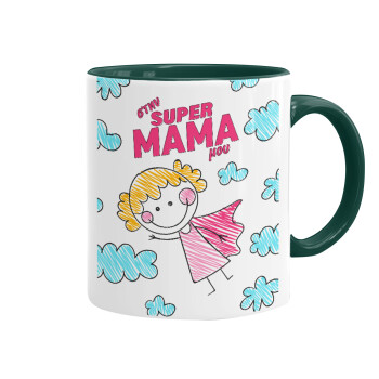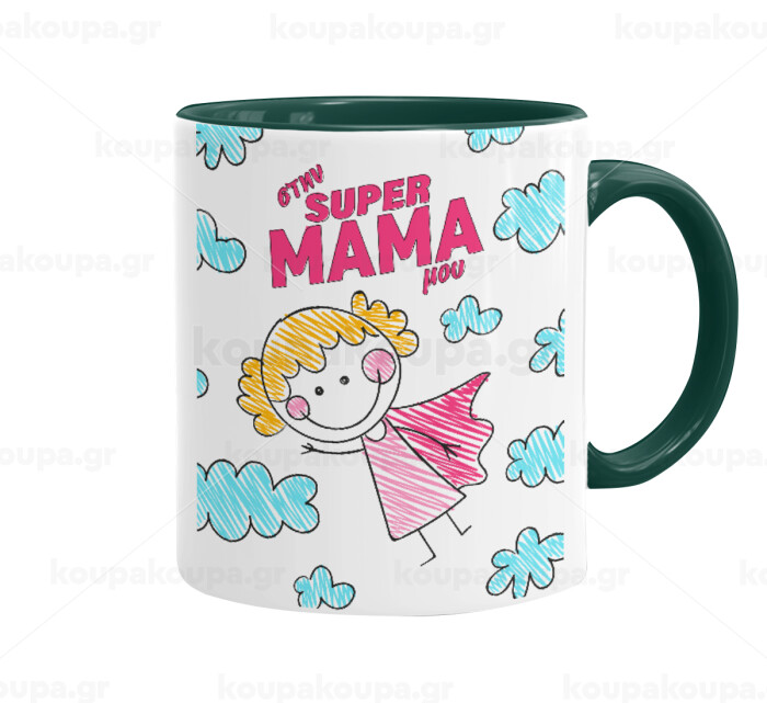 Στην SUPER μαμά μου, comic, Mug colored green, ceramic, 330ml