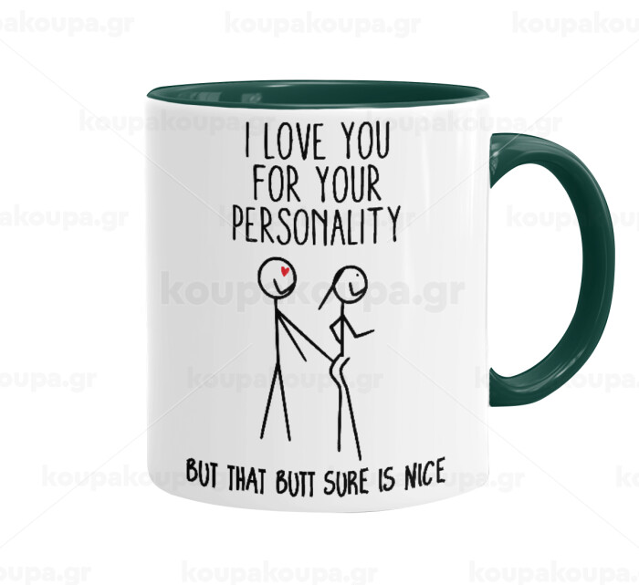 I Love you for your personality, Mug colored green, ceramic, 330ml