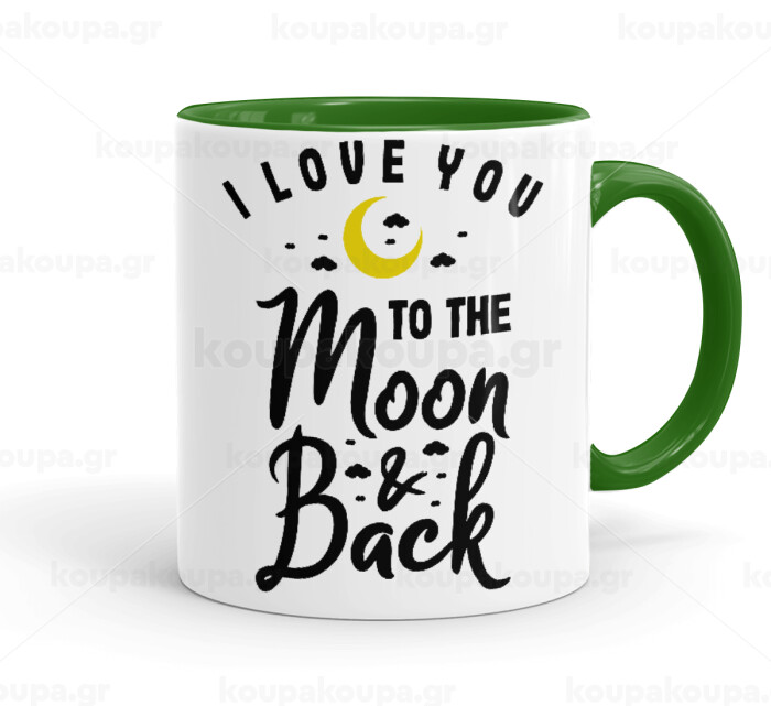 I love you to the moon and back, Mug colored green, ceramic, 330ml