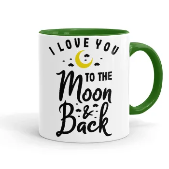 I love you to the moon and back, Mug colored green, ceramic, 330ml