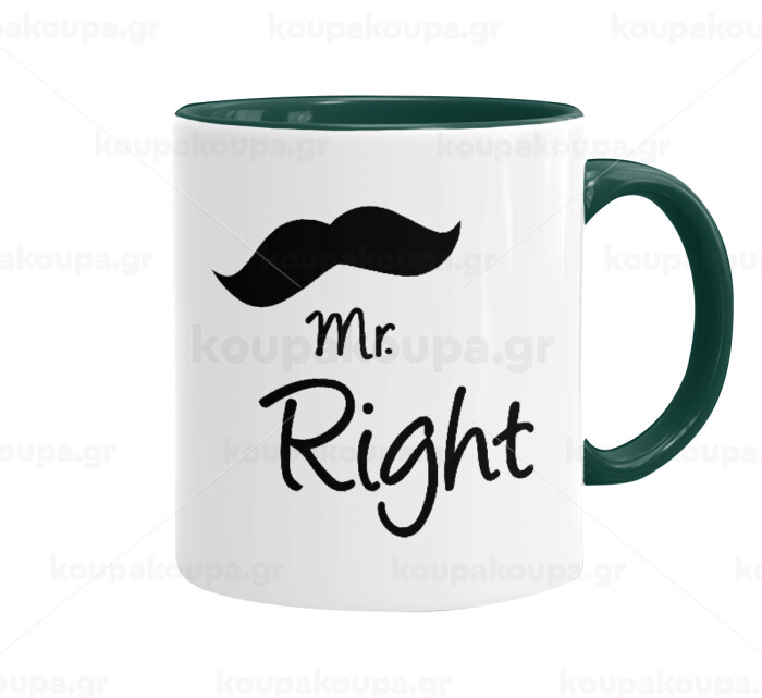 Mr right Mustache, Mug colored green, ceramic, 330ml
