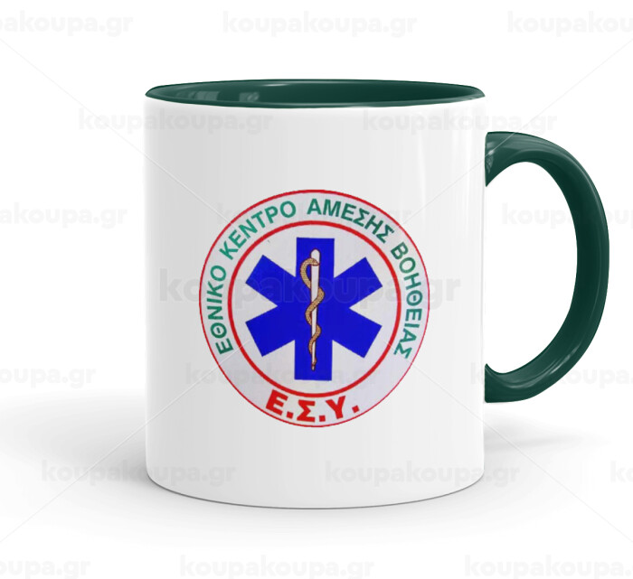 ΕΚΑΒ, Mug colored green, ceramic, 330ml