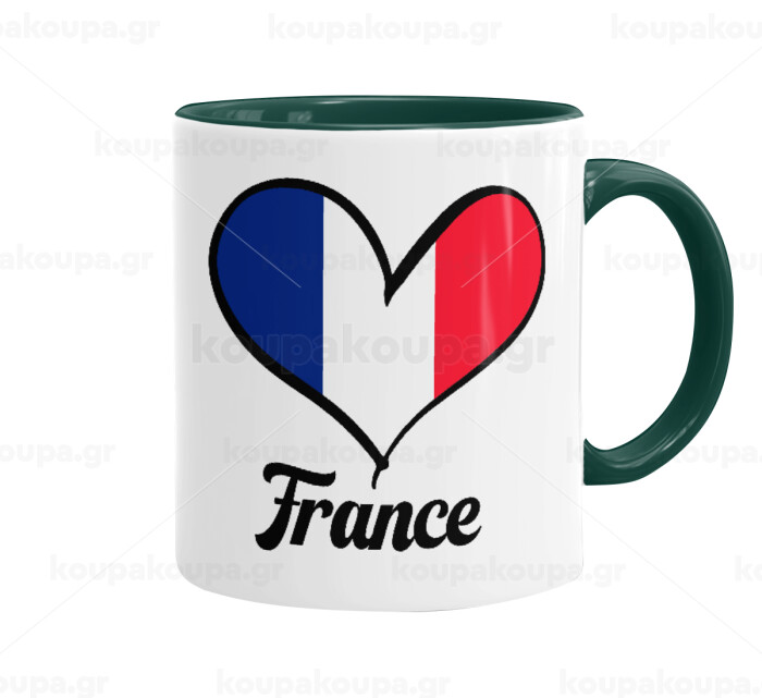 France flag, Mug colored green, ceramic, 330ml
