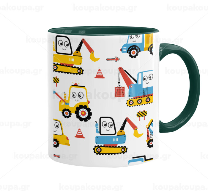 Hand drawing building truck, Mug colored green, ceramic, 330ml