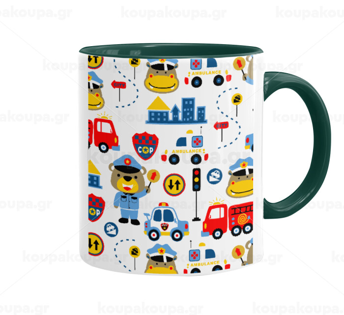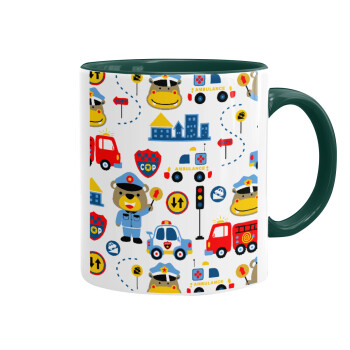 Rescue team cartoon, Mug colored green, ceramic, 330ml