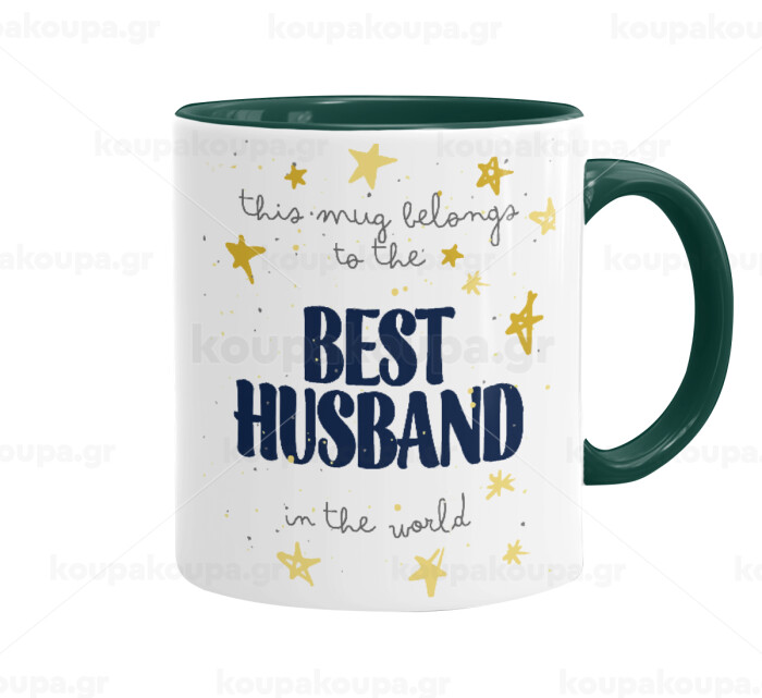 This mug belongs to the BEST HUSBAND in the world!, Mug colored green, ceramic, 330ml