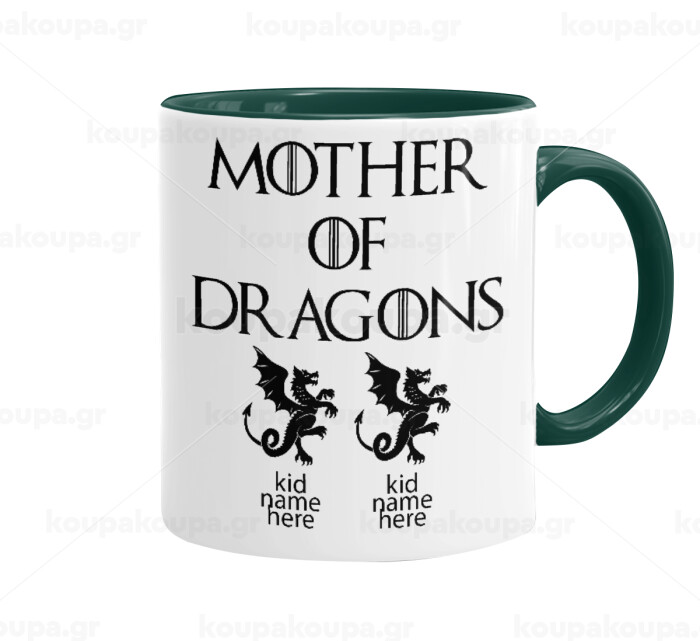GOT, Mother of Dragons (με ονόματα παιδικά), Mug colored green, ceramic, 330ml